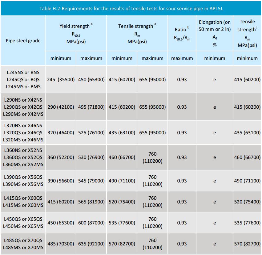 e. For pipe requiring longitudinal testing, the maximum yield strength shall be ≤ 495 MPa (71 800 psi).