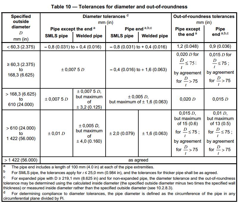 c. Above limit applies for pipe with D > 323,9 mm (12.750 in).