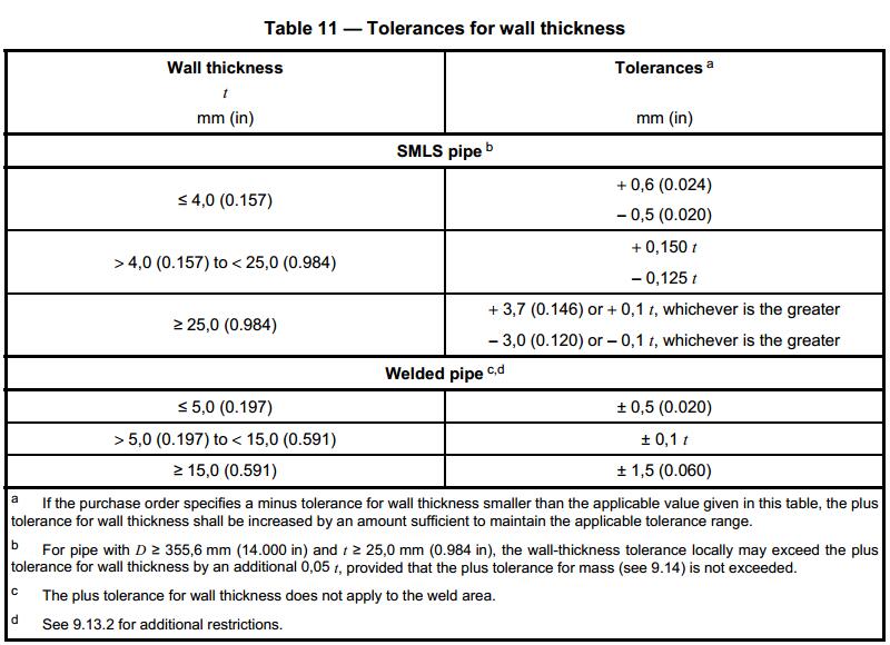 d. For intermediate grades, the specified minimum tensile strength for the weld seam shall be the same value as was determined for the pipe body using footnote a).