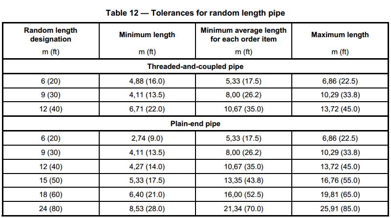 b. Approximate lengths shall be delivered as tolerances of +/- 500 mm.