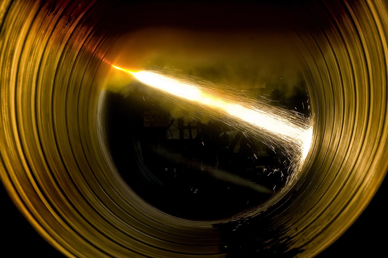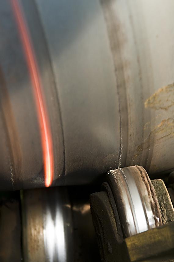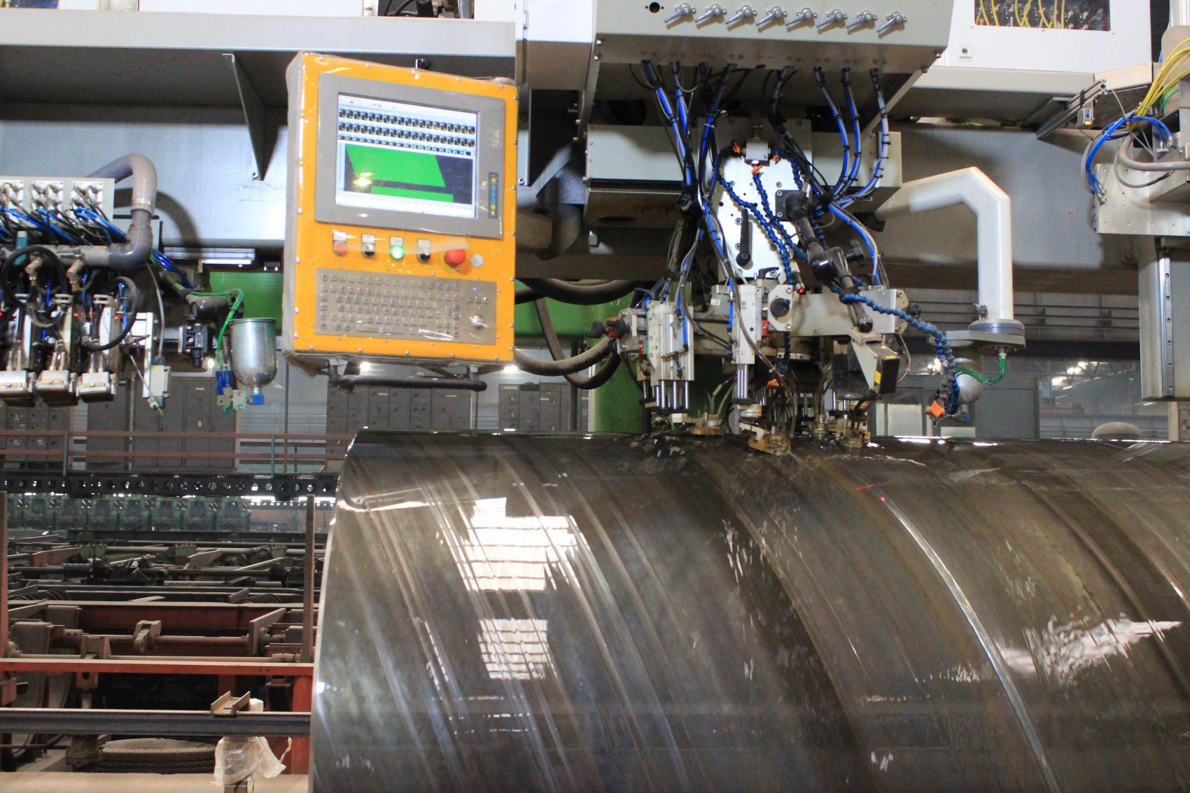 Sıcak haddelenmiş çelik bantların kaynağı, ön-şekillendirme ve şekillendirme makaralarından geçtikten sonra spiral formunu alır. Tozaltı tandem kaynak işlemi ile yüksek üretim hızlarında mükemmel bir kaynak kalitesi sağlanır.