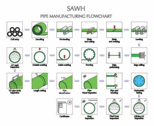 Borular hidrostatik test, ultrasonik ve X-ışını uygulamalarını takiben, proje ve müşteri taleplerine uygunluk için son kontrol işlemlerine tabi tutulur.